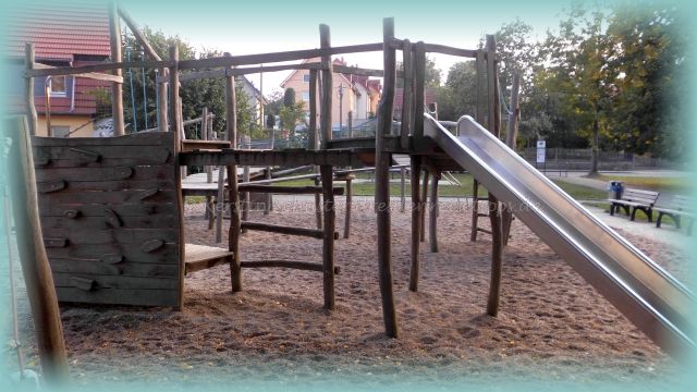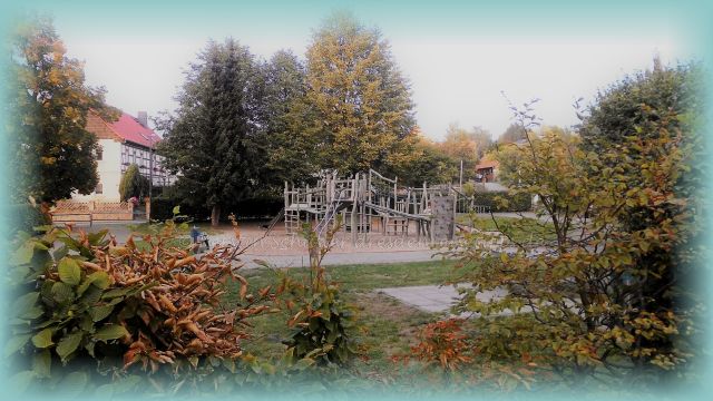Noch nicht genug getobt? Dann schnell hinunter zum großen Holzspielplatz am Dorfteich. Dort gibt es Schaukeln, Klettergeräte, viel Sand und eine Tischtennisplatte.
