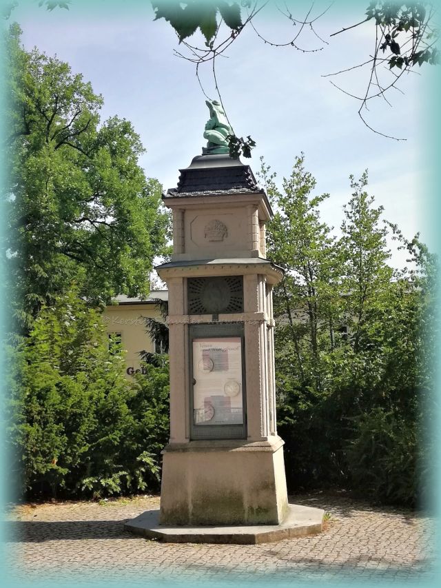 Die Wettersäule mit dem Lockwitzer Frosch wurde nach Entwürfen eines Professors mit Namen Jean Pape gefertigt. Über ihn konnte ich leider wenig in Erfahrung bringen, nur dass er einst in der „Königlich Sächsischen Kunstgewerbeschule“ in der Allgemeinen Abteilung für architektonisches Kunstgewerbe tätig war.