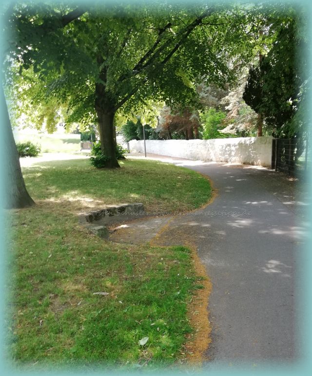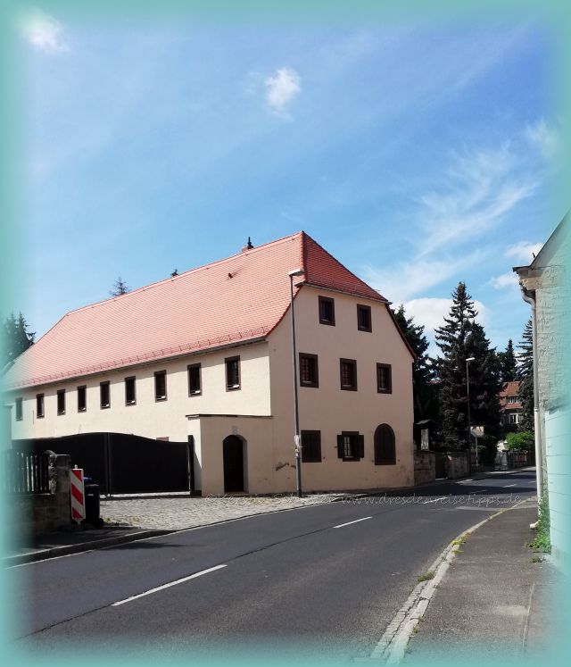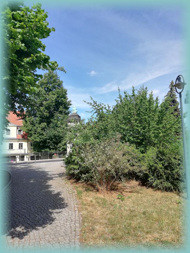 Nachdem ich wieder am Ausgangspunkt Lockwitzer Frosch gelandet war, marschierte ich weiter in Richtung Schlosskirche. Ihr gegenüber schlug ich in den Feldweg ein, eigentlich die Lochnerstraße, doch kam nur bis zur Hälfte.