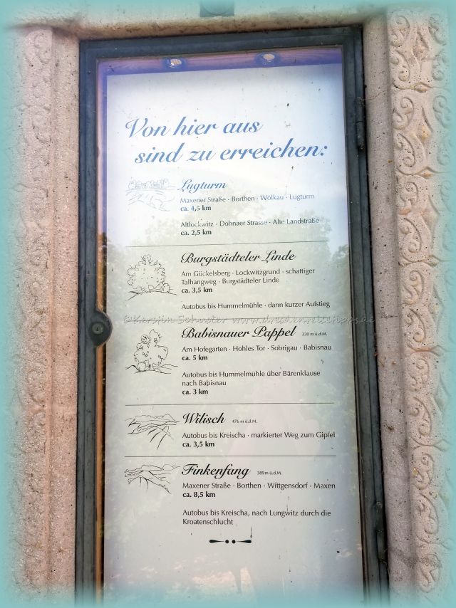 Die Wandervorschläge an der Tafel der Wettersäule mit dem Frosch sind allesamt empfehlenswert. So auch eine Busfahrt nach Kreischa, denn von da aus kannst du zu verschiedenen Rundwanderungen aufbrechen oder bis zum Wilisch wandern.