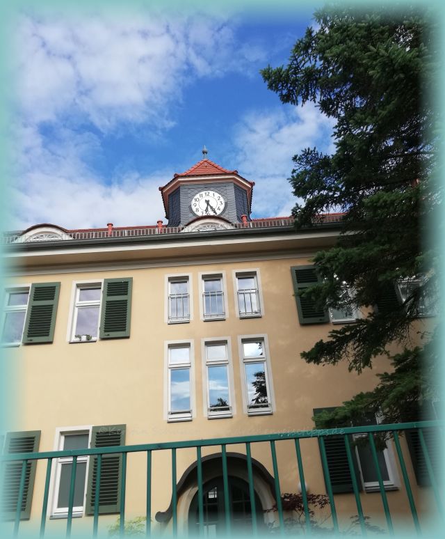Ich kam an einem Gebäude vorbei, was ich aufgrund des kleinen Türmchens mit der Uhr auf dem Dach für ein altes Schulhaus hielt.