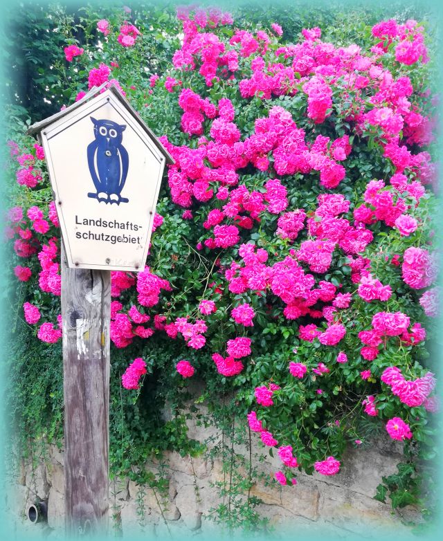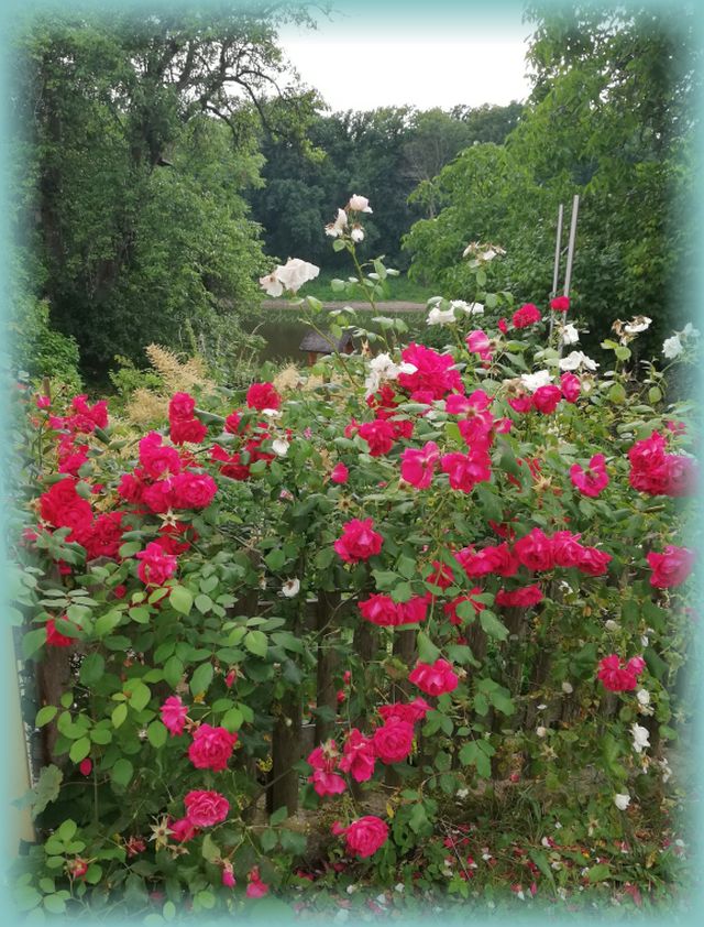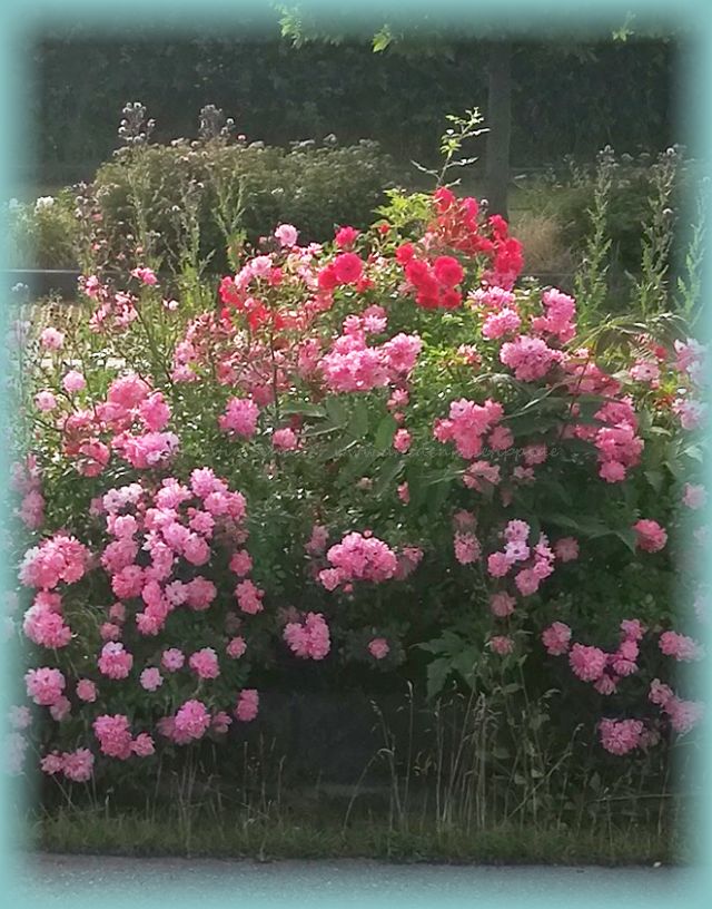 Jedenfalls musste ich unbedingt den hübschen Privatweg einschlagen, auf dessen rechter Seite das besagte Haus stand, an das eine lange Mauer grenzte. Herrliche Rosen in verschiedenen Farben säumten den Weg. Und wie sie dufteten, einfach himmlisch. Die Bienen hatten ebenfalls ihre Freude daran.